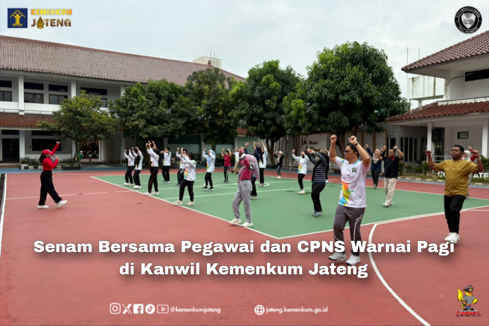 Semarang – Kantor Wilayah Kementerian Hukum Jawa Tengah menggelar senam pagi bersama pada Kamis (11/09/2025) yang diikuti oleh pegawai dan Calon Pegawai Negeri Sipil (CPNS). Kegiatan yang dilaksanakan di halaman kantor ini berlangsung meriah dan penuh semangat.